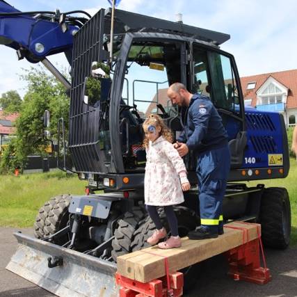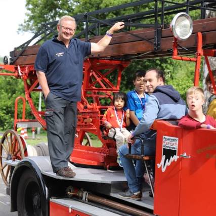 Pünktlich um 13:00 Uhr erschienen auch Batman, Superman und Superwoman,die wunderschöne Cinderella samt der bezaubernden Guten Fee. Besonders beliebte Stars waren auch das Maskottchen Flori der Feuerwehr und die historische Drehleiter Baujahr 1938, mit der Rundfahrten gemacht werden konnten.