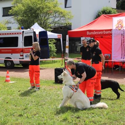 Für besondere Begeisterung sorgte auch die BRH Rettungshundestaffel Rems-Murr mit ihren Vorführungen. "Wow hat der aber ein weiches Fell" staunte eine kleine mutige Besucherin, die sich traute, einen der Vierbeiner zu streicheln.